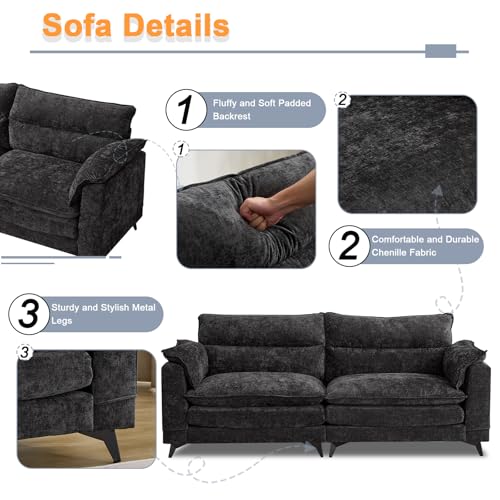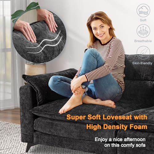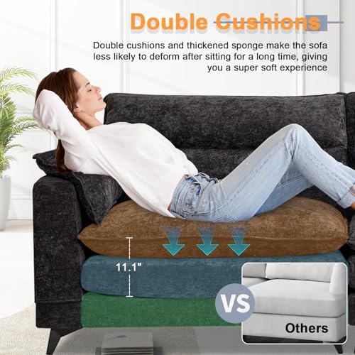 DOUBLE CUSHIONS LOVESEAT SOFA: This chenille 2-seater sofa is very comfortable and practical. It features a wooden frame with a sturdy and stable structure that can withstand the stress of daily use. Most importantly, our sofas feature double-layer cushions, making the sitting feel softer.. In addition, the use of chenille fabric makes the surface of the sofa soft and cozy to the touch, as if lying on a cloud